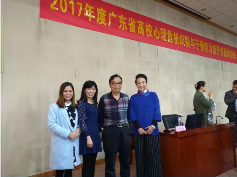针对大学生常见心理危机防治工作难题,近日,广东省高校心理健康教育与咨询专业委员会(以下简称“省高心委”)受教育厅委托面向全省高校心理专职工作人员开展了专题培训。我校学生工作处副处长张郡的带领我校心理中心专职教师参与了本次培训。