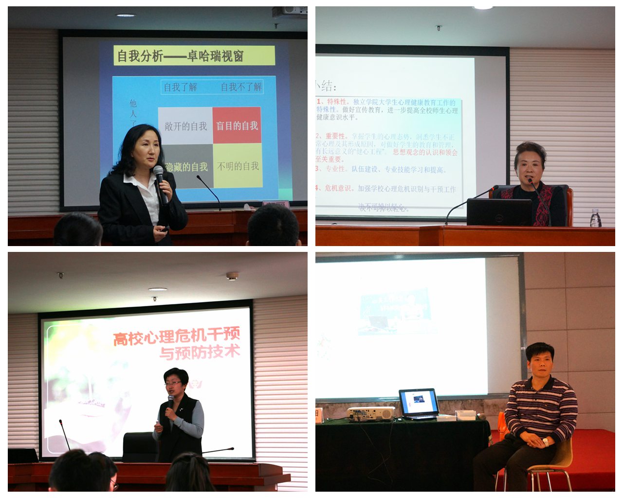 接着,学校心理健康教育与咨询中心主任高兰对谈心谈话工作过程中的技巧做了深入浅出的讲解,进一步规范了我校二级学院谈心谈话辅导的记录工作。此外,高兰主任还对我校2016年新生心理测评结果、测评回访情况、心理咨询问题分类、心理危机事件及典型咨询案例等我校大学生心理卫生状况进行了通报,再次强调了开展大学生“健心”工程的必要性、特殊性和重要性。