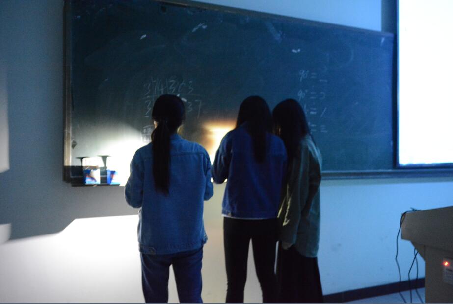 由于整个寻找过程都是在漆黑的环境中进行,这无疑也增加了同学们寻找宝箱的难度。但是同学们并没有因此而放弃,反而更加聚精会神。每个小组都进行了协商,拿出了他们坚强不屈的精神,分工合作,很快便把藏在教室每一个角落的宝箱都找齐了。当他们用钥匙打开第一个宝箱,并且从中破解了第一个宝箱中的问题,获得了第二个宝箱的答案。逐渐增加的问题难度也难倒了不少的同学,可从同学们脸上露出的认真思考的神情真的很让人敬佩。令我更加震惊的是,只有1个人的小组的男生居然是第一个破解掉所有宝箱密码完成游戏的人。活动结束后我们采访了他才得知原来他平时喜欢看一些侦探类的书,并且为这个活动做足了准备,所以获得第一也是实至名归。其他小组的表现也是各有各的风采,通过团队的合作中,各个小组成员都逃出了密室。
