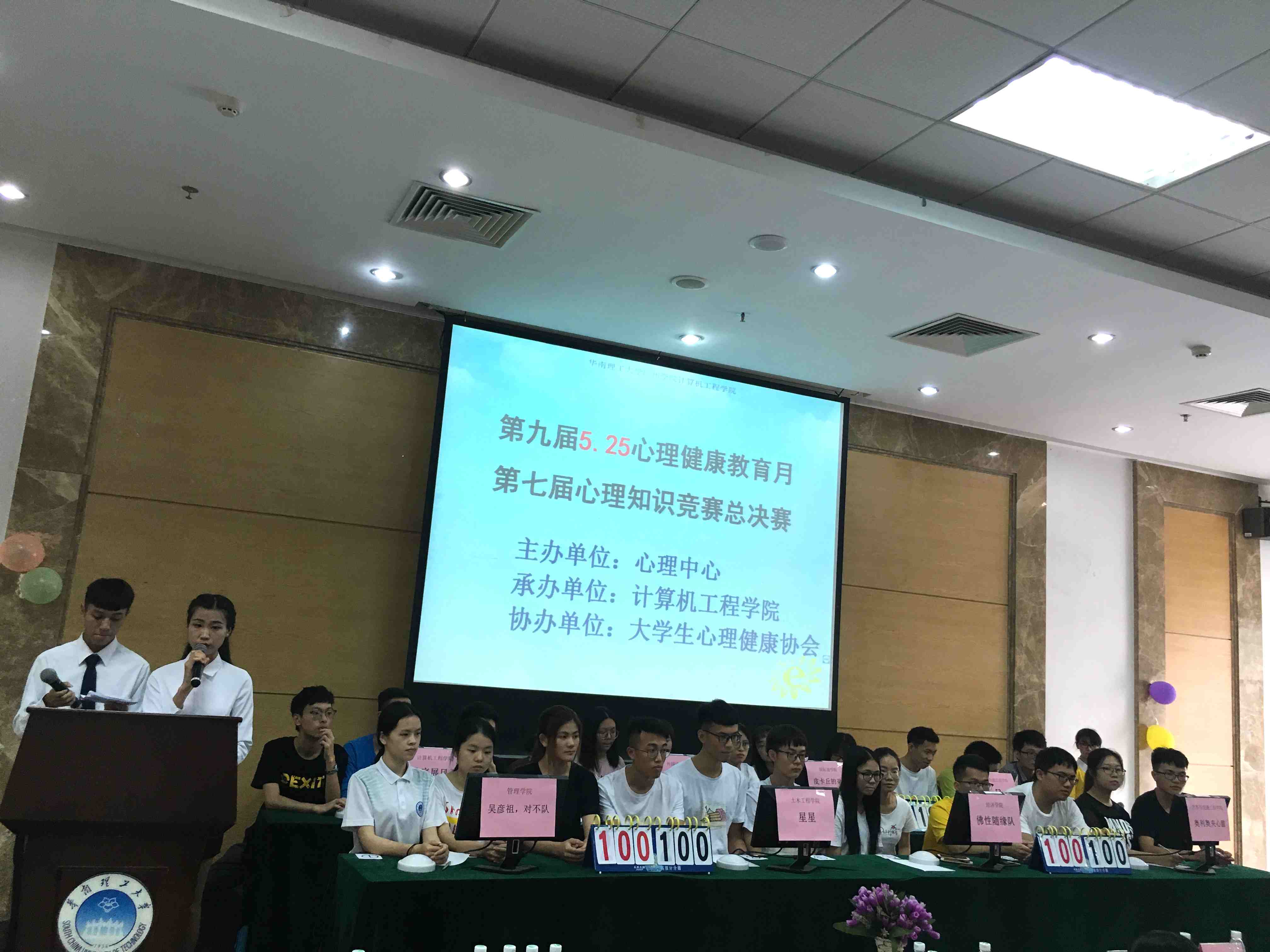表彰结束后,又一轮高潮袭来。由心理健康教育咨询中心主办、计算机工程学院承办的第七届心理知识竞赛决赛拉开序幕。本届心理知识竞赛活动共有264支队伍,792名学生报名参加,经过初赛的激烈比拼,汽车与交通学院、电子信息工程学院、计算机工程学院、管理学院、经济学院、外国语学院、土木工程学院、国际商学院共八支代表队挺进总决赛。竞赛前,各个代表队以视频方式展示了各自阵容和风采,赢得了全场喝彩。