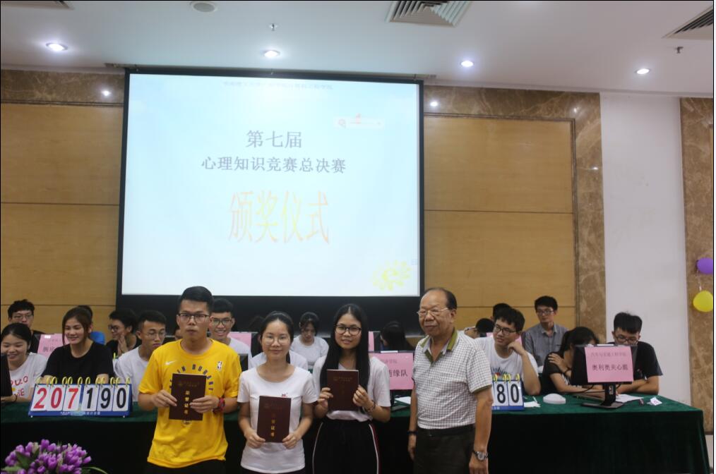 本届决赛分为“心有灵犀”、“突然袭击”、“峰回路转”三个环节,每个环节的设计都精彩连连。在“突然袭击”环节中,选手们抢答频频犯规,不仅使参赛队伍更加紧张,更是刺激了观众的神经高度紧绷。随后的“峰回路转”,各队选手自由选择不同难度的题目,答对加分、答错要扣除相应的分数,惊喜与心跳并存,选手别出心裁的回答使现场观众开怀大笑。在时而紧张、时而轻松的气氛中,第七届心理知识竞赛活动圆满结束。管理学院代表队因赛前的充分准备,现场的出色表现,完美的团队合作精神,最终获得了总决赛的冠军;土木工程学院、国际商学院凭借努力拼搏荣获二等奖;计算机工程学院、电子信息工程学院、外国语学院凭借稳定发挥并列夺得三等奖;汽车与交通工程学院、经济学院荣获优胜奖。