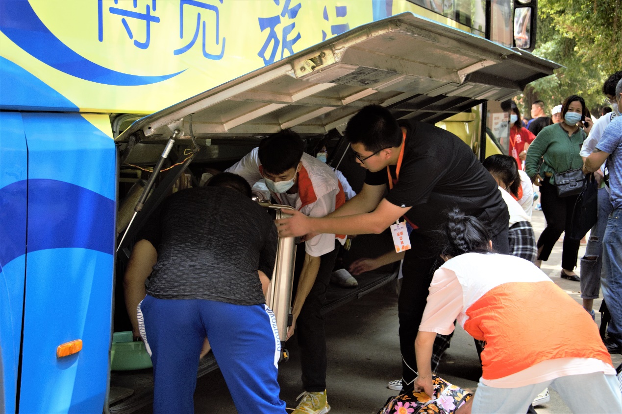 志愿者搬运行李(学生志愿者服务中心 摄)
