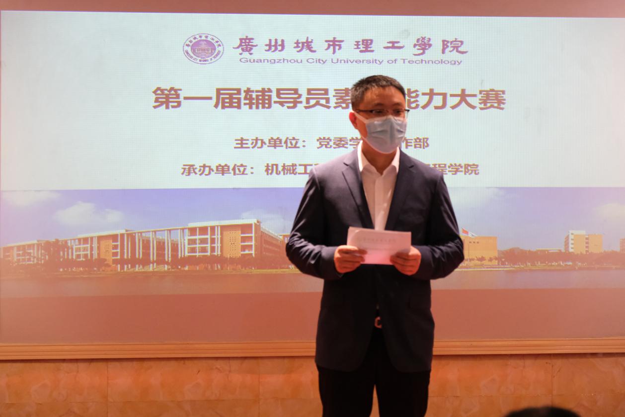 本网讯(记者 李智 甄诚 殷佳隽)为深入贯彻全国教育大会和全国高校思想政治工作会议精神,推进落实立德树人根本任务,切实加强辅导员队伍专业化、职业化建设,提升辅导员职业能力和职业素养,4月21日下午在A6-201成功举办了广州城市理工学院第一届辅导员素质能力大赛决赛。学校副校长刘洊波、党委学生工作部常务副部长汪昊、部分二级学院书记、学生代表出席了本次活动。