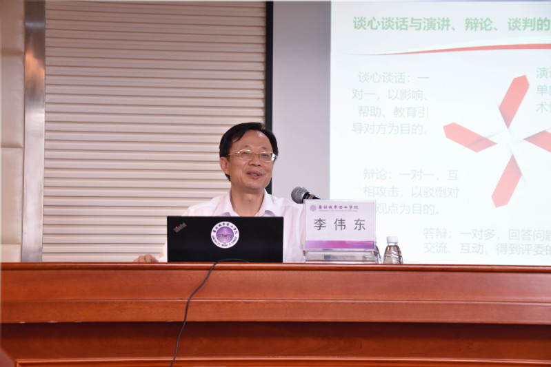 李伟东部长以“高校辅导员核心能力提升之如何与学生有效沟通”为题,以自身工作经历为主要内容,趣味性与哲理性相结合,对辅导员与学生沟通的概述,辅导员与学生沟通的原则,辅导员与学生沟通的技巧,以及辅导员与学生沟通存在的主要问题、解决方式等方面进行了详细的讲解。内容丰富详实,形象生动,参会老师们表示受益匪浅。