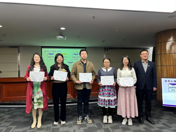 教务处处长张星明为省心理教育大赛获奖辅导员颁奖(吴佳 摄)