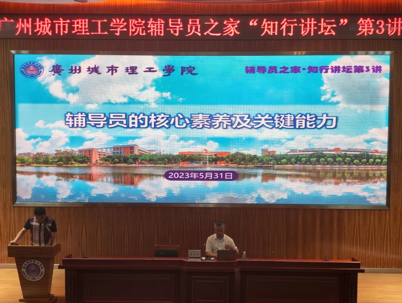 本网讯(记者 甄诚 沈桂霖)为深入开展学习贯彻习近平新时代中国特色社会主义思想主题教育,进一步提升辅导员理论素养,促进辅导员工作能力提升,加快我校辅导员职业化、专业化、专家化建设。5月31日下午,党委学生工作部邀请广州科技职业技术大学党委书记、省政府督导专员冯小宁研究员在行政楼703室报告厅开展辅导员之家“知行讲坛”第四讲之“辅导员的核心素养和关键能力”讲座。讲座由党委学生工作部常务副部长汪昊主持,全校辅导员参加讲座。