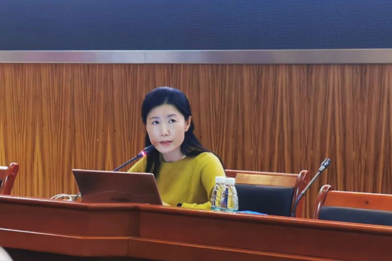 心理中心主任鲁丹凤在会议上讲话(刘伶俐 摄)