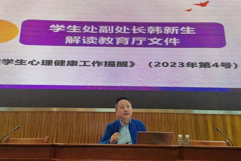 本网讯(记者 刘伶俐)11月22日上午,我校2023-2024学年第一学期心理工作会议在行政楼703顺利召开,学生工作处副处长韩新生、各学院学工办(副)主任、全体辅导员导员、心理健康教育与咨询中心(以下简称“心理中心”)专职教师110余人参加了此次会议。