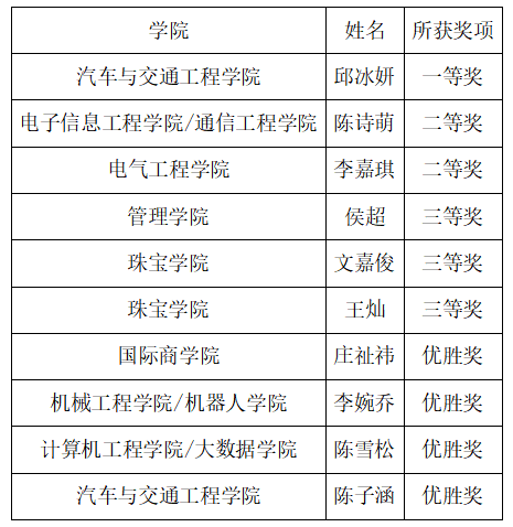 党委副书记、副校长刘洊波为一等奖选手颁奖(汽车与交通工程学院 提供)