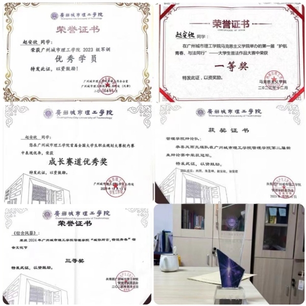 赵安欣同学在校期间获得的荣誉证书(部分)(赵安欣 提供)