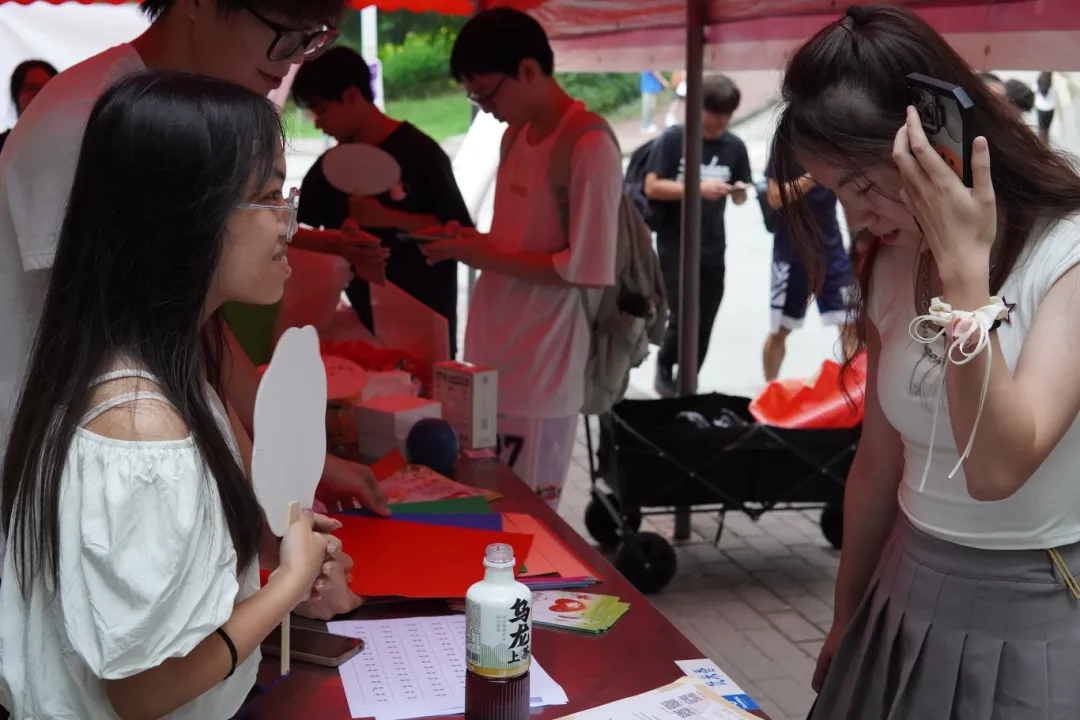 DIY漆扇区,同学们挥毫泼墨,在空白扇面上绘出自己心中的图案,无论是抽象的艺术表达,还是具象的风景描绘,每一把扇子都承载着独一无二的情感与梦想,成为了个性与创造力的完美展现。
