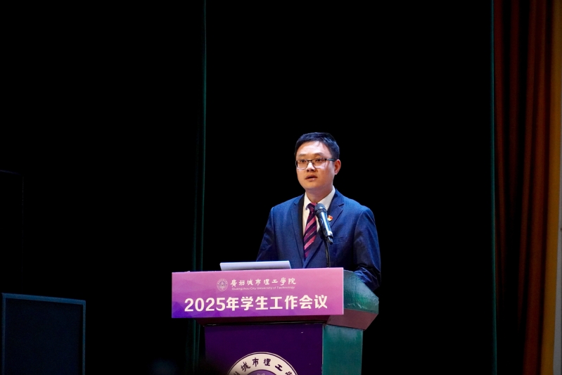 刘洊波作总结讲话,他代表学校党委,向受到表彰的师生表示衷心的祝贺、向辛勤付出的老师和同学表示诚挚的感谢!他强调,2025年,我校即将迎来本科教学工作合格评估。学校学生工作要在铸魂育人、深化学风建设、提升服务效能、筑牢安全防线上持续发力,在校园中形成见贤思齐、积极向上的良好风尚,提升学校人才培养质量。他对全体学生提出了殷切希望:一是希望同学们深刻体悟强国建设、民族复兴的深刻内涵,坚定理想信念。二是鼓励广大同学要永葆求知求学心态,积极参加各类实践活动,在实践中锤炼本领才干。三是勇于挺膺担当,展望未来,以勇于创新引领当今时代潮流。