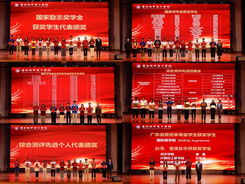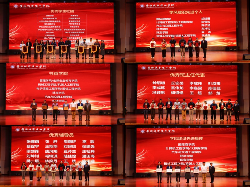 汇报结束之后,与会领导和嘉宾分别为2024年综合测评先进个人、先进班集体;书香学院、先进借阅学生、教师;优秀学生社团、优秀社团指导老师;心理健康教育工作先进个人、优秀心理健康联络员、优秀二级心理辅导站;广东省政府来粤留学生、台湾、港澳及华侨、国际交流基金系列获奖学生;国家奖学金、国家励志奖学金获奖学生;优秀班主任;优秀辅导员;学风建设先进个人、先进集体等荣誉的师生、学院颁发荣誉证书。