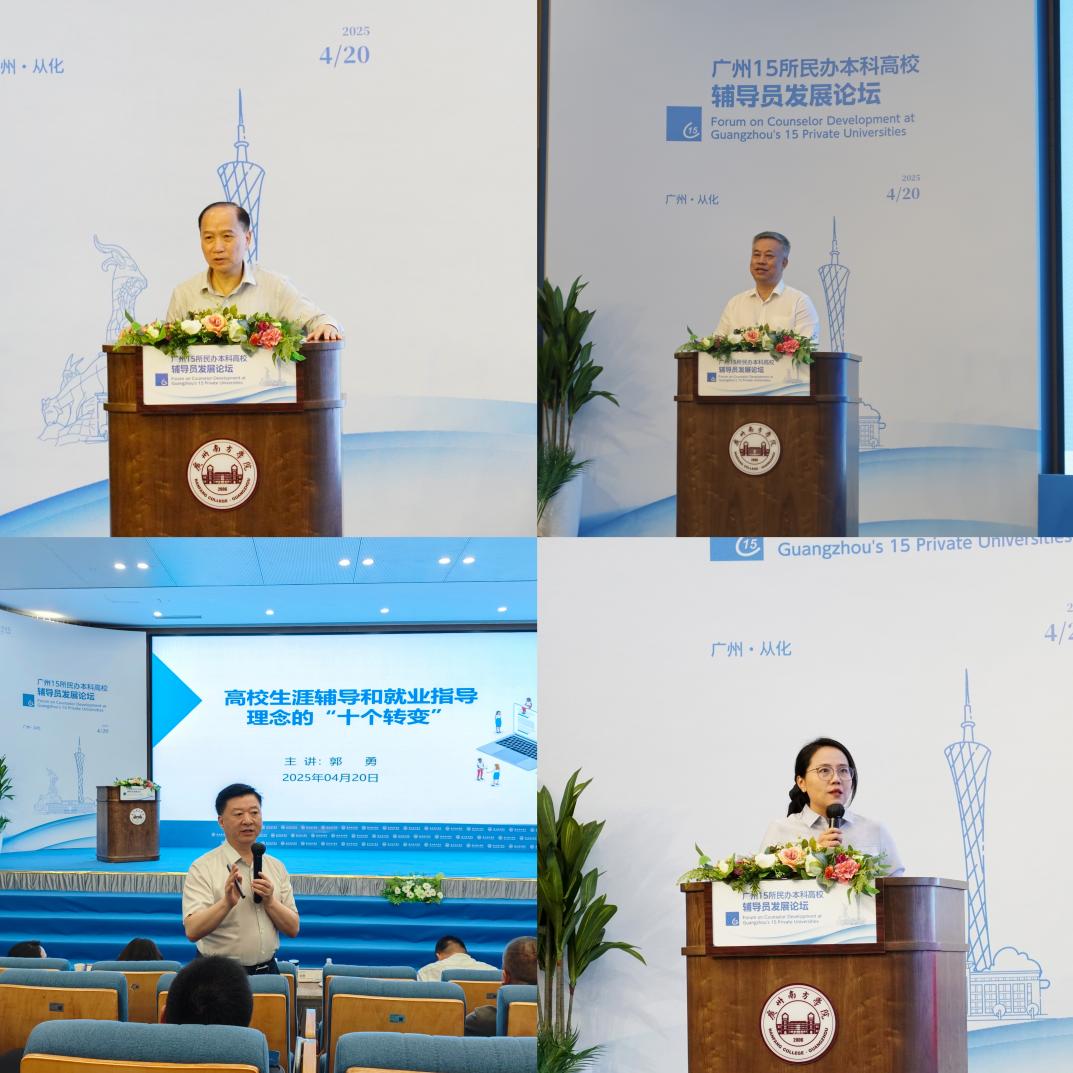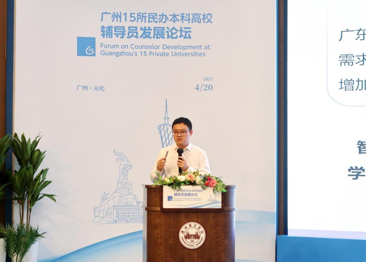 本网讯(记者 甄诚)2025年4月20日,由广州南方学院主办的"广州15所民办本科高校辅导员发展论坛"在该校隆重举行。我校学生工作部(处)代表及辅导员代表参加本次论坛,与广东省民办教育协会领导、全国知名专家及广州地区民办高校学工同仁齐聚一堂,共同探讨新时代民办高校辅导员队伍建设的新路径。