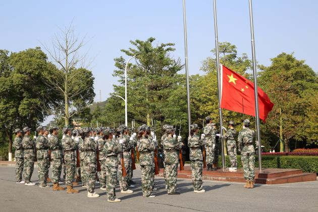 队列展示环节庄严肃穆,振奋人心。随着雄浑激昂的国歌奏响,三校国旗护卫队队员以军姿挺拔、步履铿锵的英姿依次亮相。队员们每一个动作都标准规范,每一个眼神都坚毅专注,充分展现了新时代青年学子守卫国旗的赤诚之心。广东省国防教育学会专家对展示给予高度评价,并强调:护卫国旗不仅是一项光荣使命,更是一种政治责任。要将'国旗重于生命'的信念根植于心,真正做到内化于心、外化于行。在随后举行的战术表演中,三校队员以精湛的技能、默契的配合,演绎了国旗护卫队员的过硬素质和昂扬风貌。表演既蕴含着对革命先烈的崇高敬意,又彰显了新时代青年奋发有为的进取精神。