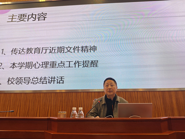 刘洊波强调,我校心理工作会议的召开正当其时。春季学期是学生心理问题和心理危机高发的季节,各单位要高度重视,全面关心和掌握学生的心理动态,及时排查和发现学生心理问题并进行干预和疏导,避免因工作疏忽、处置不当造成的损失。同时,他还肯定了我校过去一年开展心理工作的相关人员的辛勤付出和取得的成就,希望各位老师在新的一年砥砺前行,维护校园的安全稳定,营造开放、包容、支持的校园氛围。